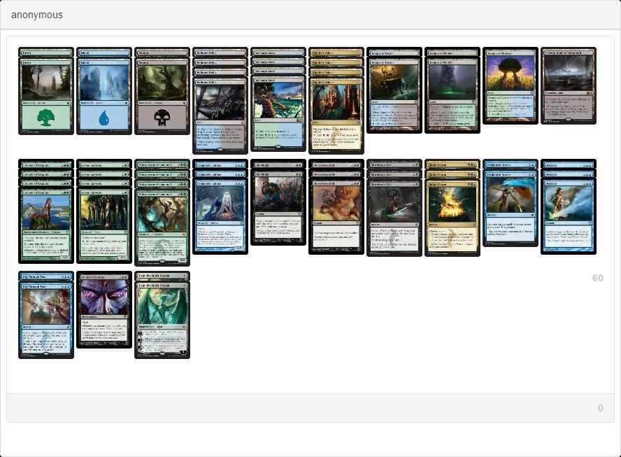 アグロではなくコントロールに入れてみました。スフィンクスの占術3で不要なカードを下に送り込むのではなく2/2にしてしまいます。大量の除去を必要とするコントロールデッキには採用しにくいエレボスの指図も囁きの森の精霊コントロールでは活躍してくれそうです。