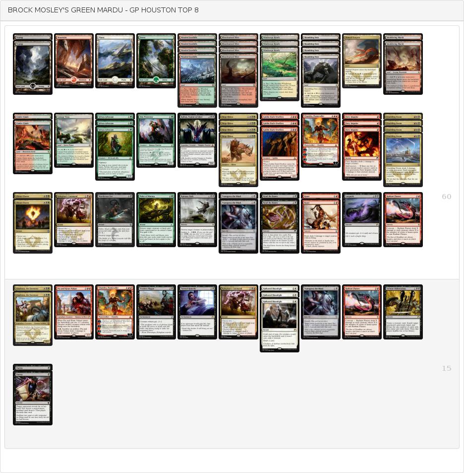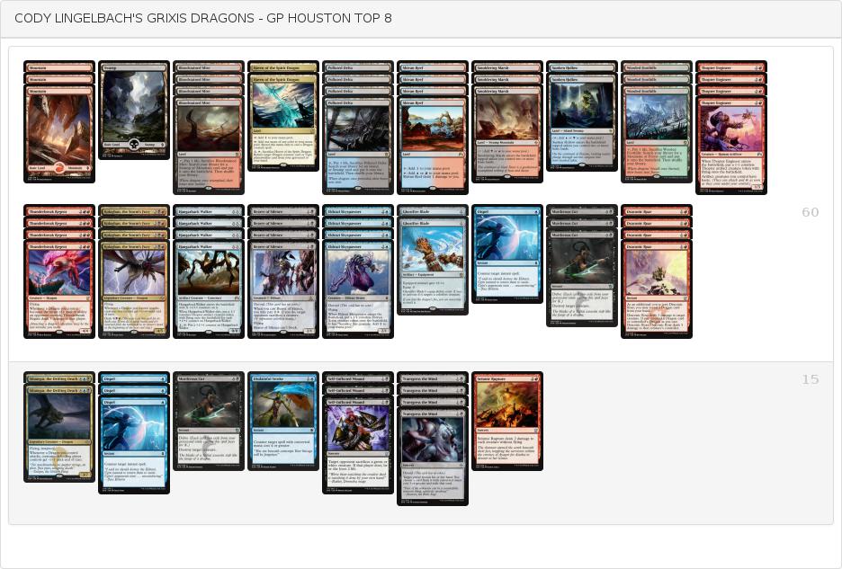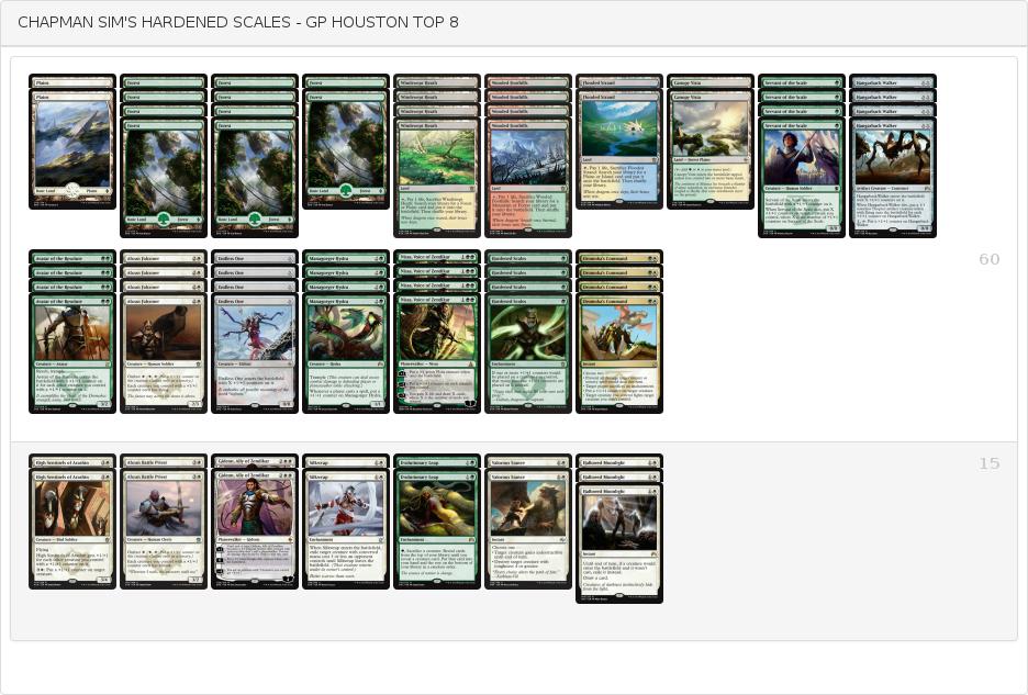 GPヒューストンがスタンダードで開催され4C Rallyが優勝しました。このGPでは緑白鱗デッキが半年ぶりに登場し旋風を巻き起こすという面白いトピックがありました。優勝こそ逃したものの環境の本命4色ラリーとともにTOP8に2つを送り込む大活躍を見せています。