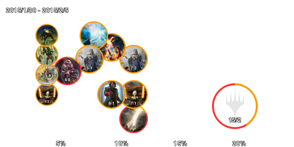 | U/R Delver | 66.7% (18-12) | 71.4% (7-5) | 63.6% (11-7) | 50% (12-6) | |